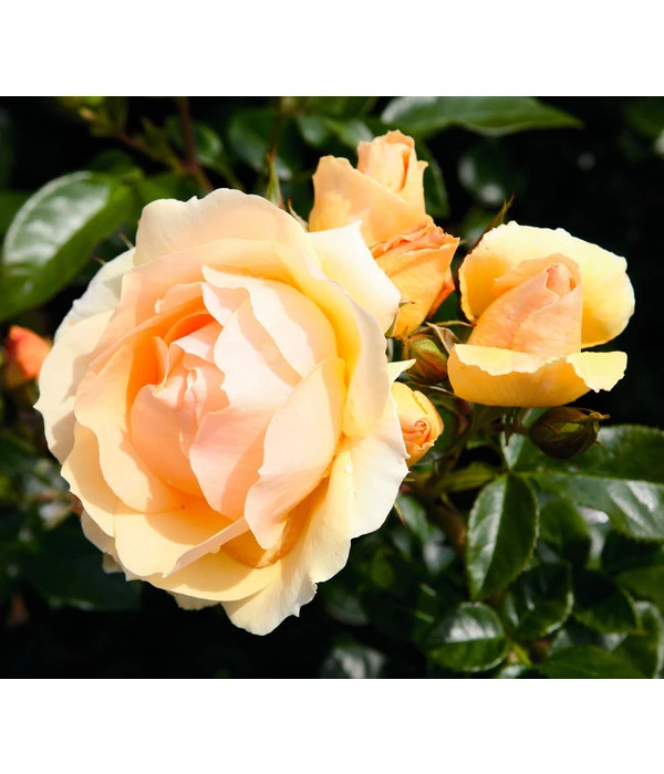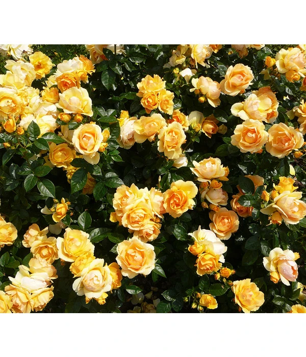 Vorhang auf, Bühne frei für die Primadonna unter den Rosen: die Beetrose ‚Hansestadt Rostock®‘ taucht Ihren Garten von Mai bis Juli in ein bernstein- bis apricotfarbenes Blütenmeer und blüht bis in den September nach. Ein Anblick, der einfach atemberaubend ist! Da ist es nicht verwunderlich, dass diese außergewöhnliche Rosenzüchtung seit ihrer Taufe im Jahr 2010 reihenweise Preise gewonnen hat, unter anderem die Goldmedaillen von Baden-Baden, von Paris und von Monza. Die leicht duftende Beetrose ‚Hansestadt Rostock®‘ sprüht förmlich vor Vitalität und begeistert neben den dicht gefüllten, lange haltbaren Blüten auch mit ihrem kompakt buschigen Wuchs und dem frischgrün glänzenden Laub. Außerdem verfügt diese Rosensorte über eine hervorragende Widerstandfähigkeit gegenüber den üblichen Rosenkrankheiten, so dass sie sogar mit dem ADR-Qualitätssiegel ausgezeichnet wurde. Die Beetrose ‚Hansestadt Rostock®‘ eignet sich für alle Pflanzbereiche im Garten, wirkt solo wie in Gruppen als bezaubernder Blickfang.