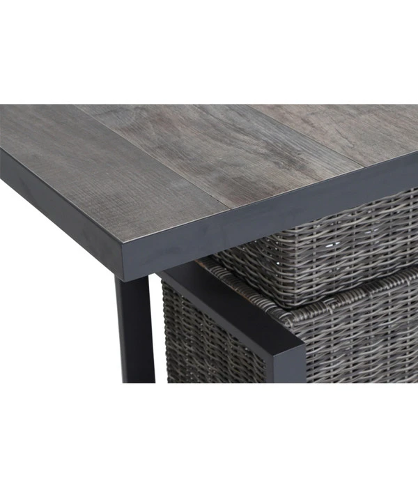 Sie sind auf der Suche nach einem optisch ansprechenden Tisch, den man bei vielen Gelegenheiten nutzen kann? Dann wird Sie der Siena Garden Lift-Tisch bestimmt interessieren. Seine Tischplatte aus hochwertiger Keramik macht sofort einen edlen Eindruck und wertet das Ambiente bei jeder Gartenparty auf. Da Sie das Möbelstück durch ein Fußpedal mittels Hydrauliksystem auch noch stufenlos in der Höhe verstellen können, lässt es sich sowohl als Lounge- als auch als Dining-Tisch verwenden. Das gibt Ihnen die Möglichkeit, das Outdoormöbel optimal an jeden Anlass anzupassen, was Ihre Familie und Ihre Freunde sicherlich zu schätzen wissen.