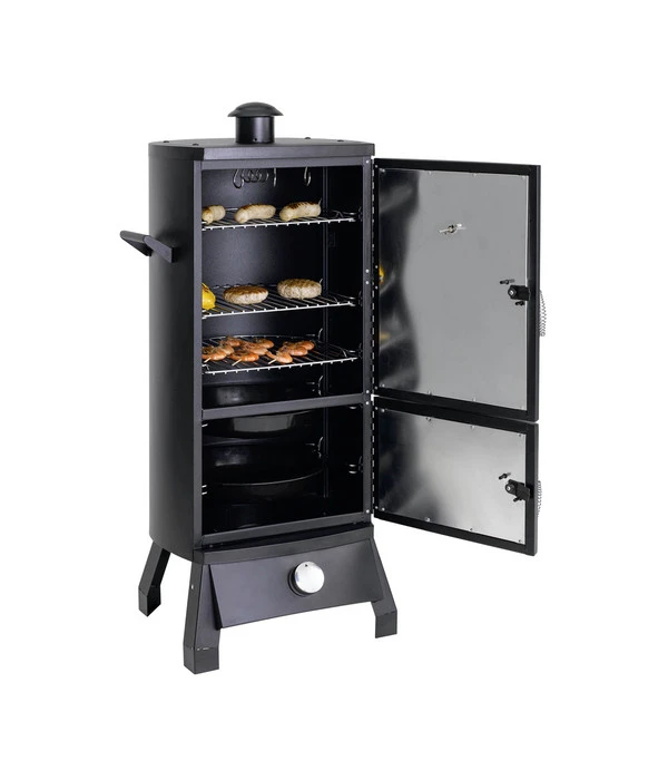 Der tepro Gas-Räucherofen Lockport steht für Langlebigkeit und einfache Handhabung. Alle Oberflächen wurden mit einer hochwertigen Pulverbeschichtung versehen. Die doppelwandigen Türen von Brennraum und Garraum lassen sich getrennt öffnen, so bleibt die Hitze besser erhalten. Beim Öffnen der Türen müssen Sie sich keine Sorgen über eine Verbrennung machen, denn die Türgriffe werden wegen ihrer speziellen Metallkonstruktion im Betrieb nicht heiß. Holen Sie sich den Genuss ins Haus und überraschen Sie Ihre Freunde auf der nächsten Gartenparty!