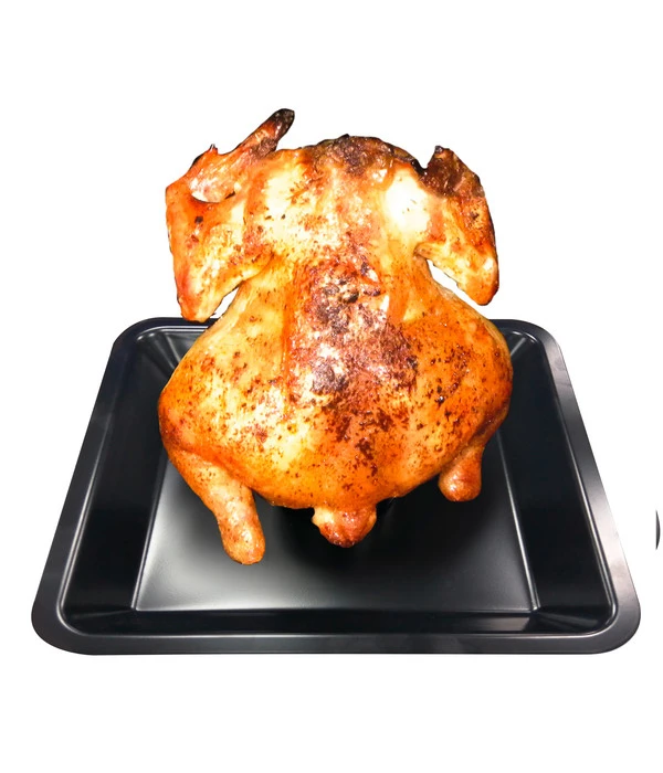 Brathähnchen gehört zu Ihren Leibspeisen? Dann wird es Sie freuen zu hören, dass Sie dank des tepro Hähnchenhalters ab sofort wunderbar saftige Hähnchen mit knuspriger Haut und herrlich saftigem Fleisch zu Hause zubereiten können. Ob Sie den Grill oder den Ofen bevorzugen, spielt keine Rolle. Das wertvolle Kitchen Tool sorgt für einen gleichmäßigen Garvorgang. Durch den speziellen Aromabehälter wird ein Austrocknen Ihrer Grillguts zuverlässig verhindert.